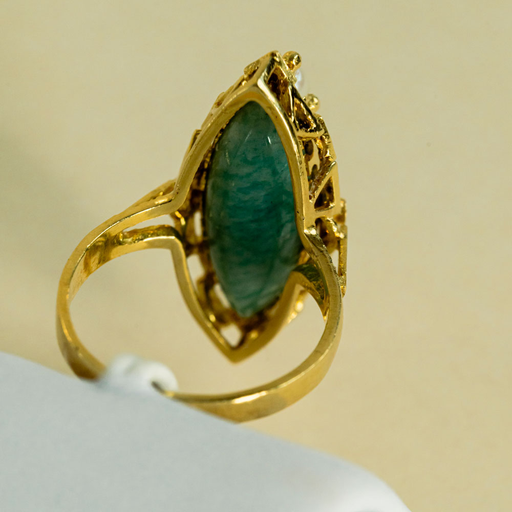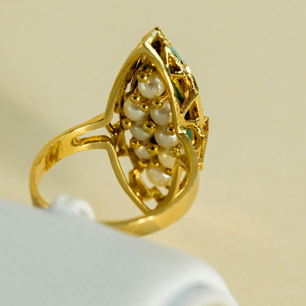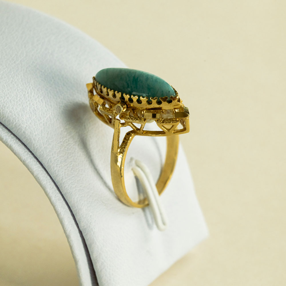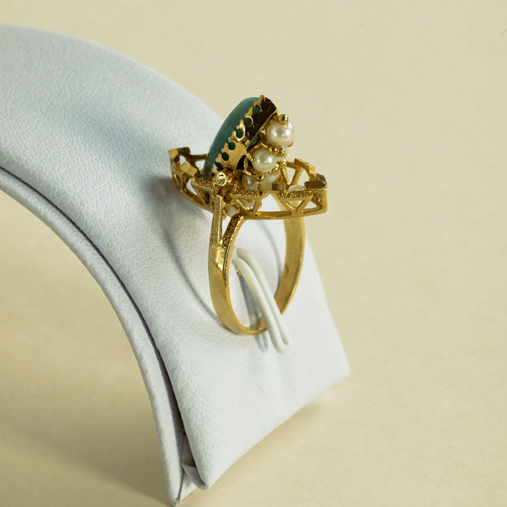 Bague Marquise Réversible Perle, Turquoise Or Jaune 18K