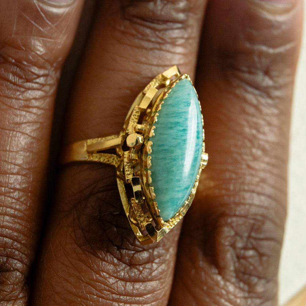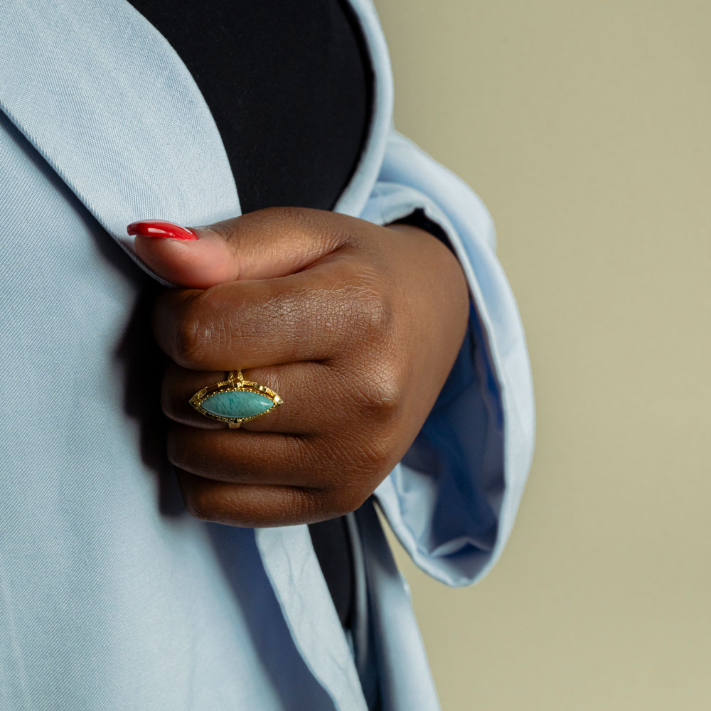 Deux visages, une seule âme. Cette bague marquise réversible est une ode à la métamorphose, à l’élégance qui change selon l’humeur ou le moment. D’un côté, une perle, douce et nacrée, évoque la pureté et la lumière intérieure. De l’autre, une turquoise vibrante, pierre protectrice aux reflets célestes, incarne la force et l’intuition.