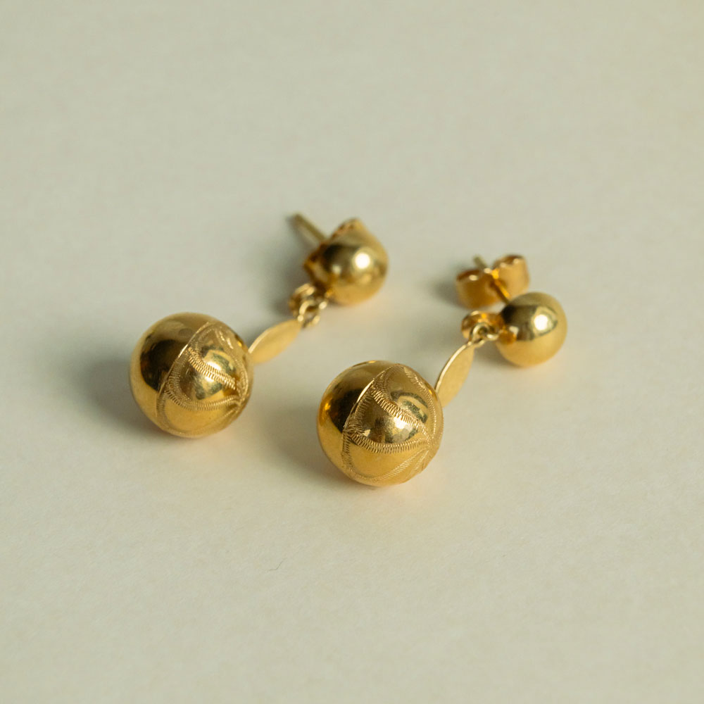 Boucles d’Oreilles Pendantes Boules Décor Étoilé Or 18K