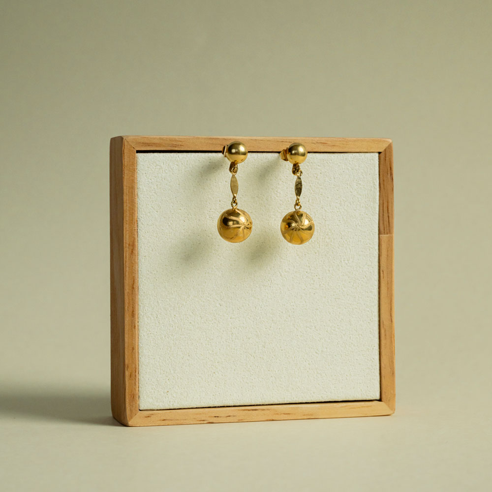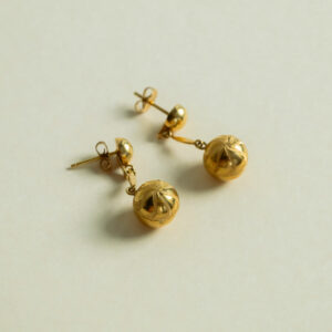 Laissez la magie opérer à chaque mouvement. Ces boucles d’oreilles pendantes, sculptées en or jaune 18 carats, capturent l’éclat des étoiles dans une danse subtile et lumineuse. Chaque boule dorée est ornée d’un motif étoilé délicat, comme une constellation secrète à porter près du cœur.