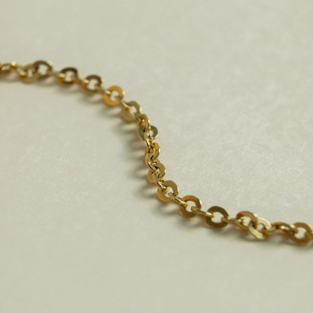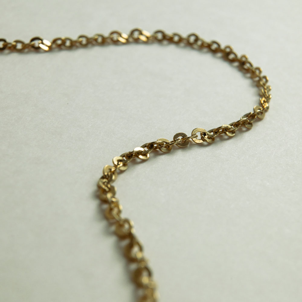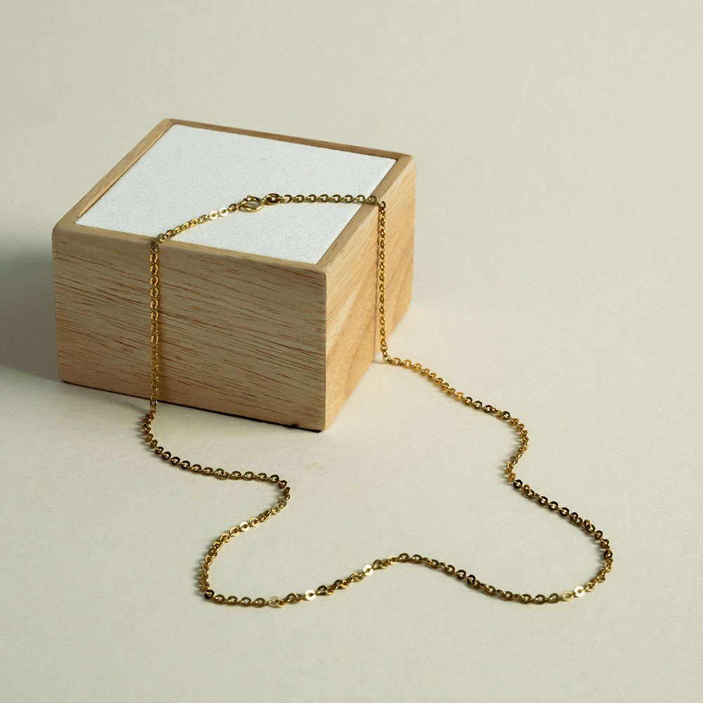 Cette chaîne épurée et éclat longue de 60 cm, séduit par sa maille forçat ronde classique et fluide, qui épouse le cou avec discrétion et élégance. Chaque maillon reflète la lumière avec douceur, comme une caresse dorée sur la peau.