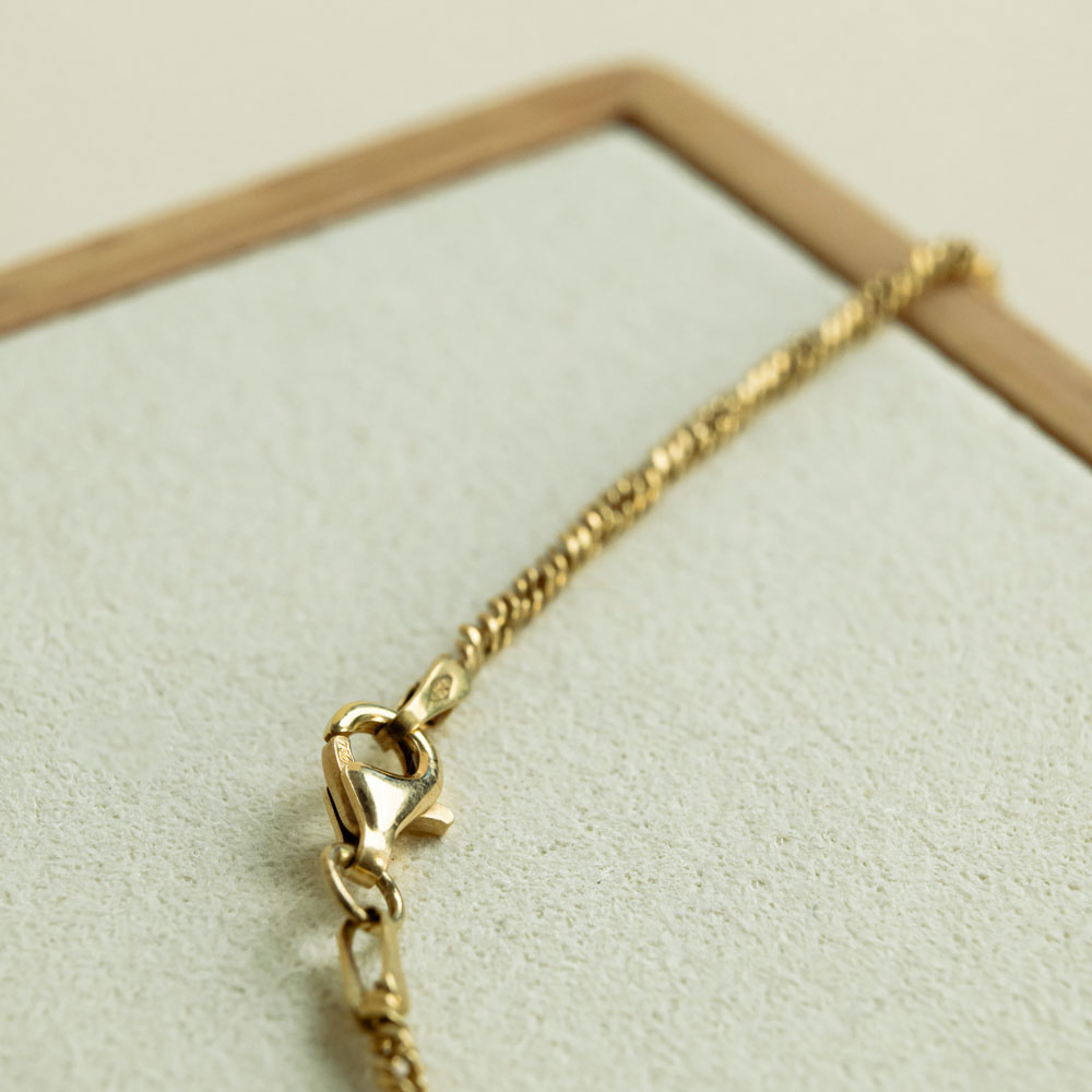 Qu’elle soit portée seule ou accompagnée d’un pendentif, cette pièce révèle une élégance discrète, empreinte de nostalgie et de noblesse.