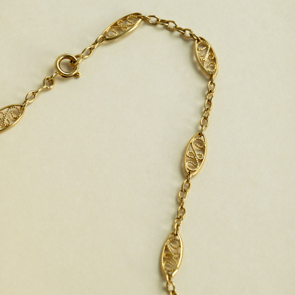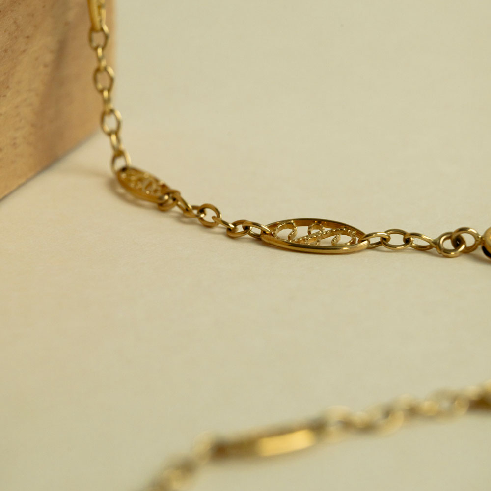 Chaque maillon est une œuvre d’art miniature, révélant un savoir-faire joaillier d’exception. Ce bijou vintage, souvent issu des ateliers français du XIXe ou début XXe siècle, incarne l’élégance intemporelle et le goût du détail.