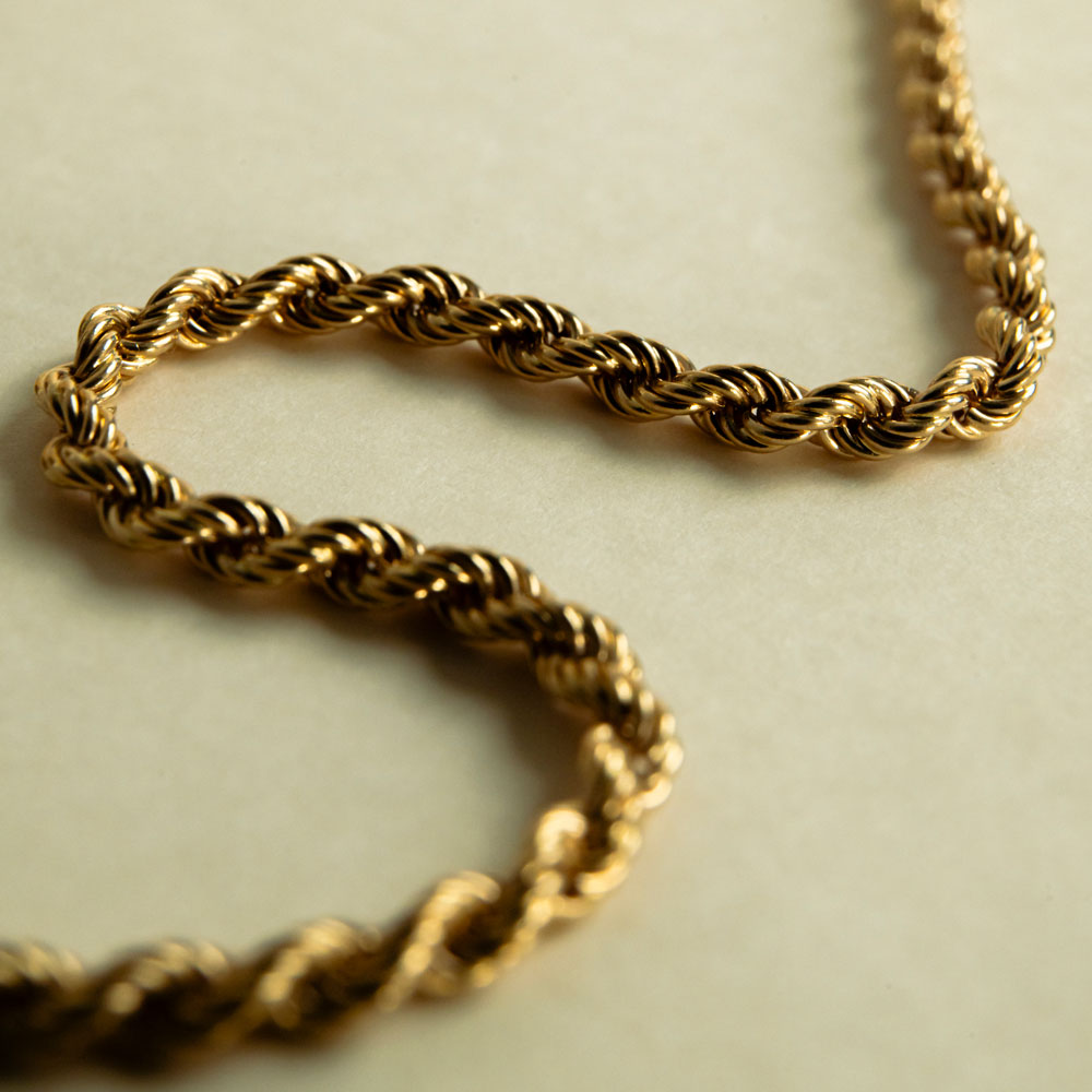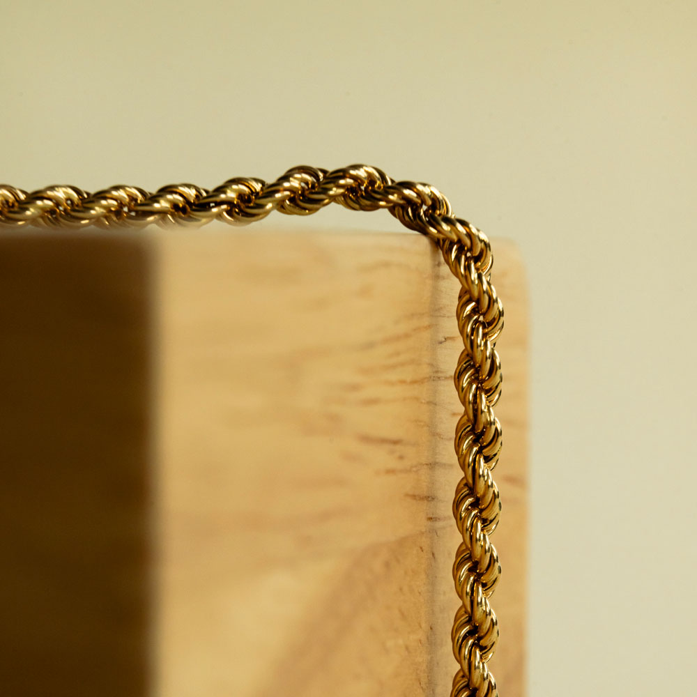 Cette chaîne torsadée en or jaune 18 carats est un classique revisité avec éclat qui incarne la force et la fluidité dans un seul geste. Sa maille en spirale type corde, finement travaillée, capte la lumière à chaque mouvement, offrant un jeu d’éclats subtil et raffiné.
