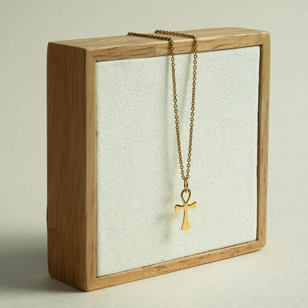 L’éternité gravée dans l’or, inspiré des mystères de l’Égypte antique, ce pendentif incarne le symbole sacré de l’Ankh, la croix de vie. Avec ses 13 mm de hauteur, il se porte comme une clé d’éternité suspendue au creux du cou.